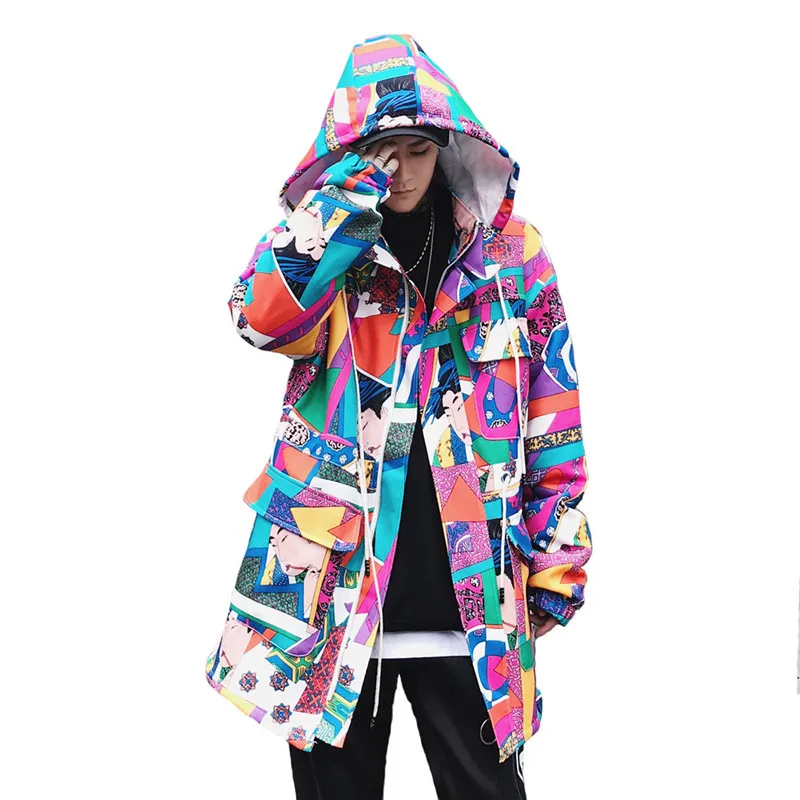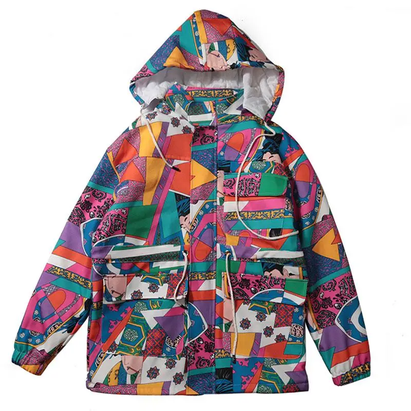 Product Name: Nuovo Blocco di Colore Giacca Patchwork Donna Hip Hop Con Cappuccio Rimovibile Bomber Giacca Streetwear Lungo Geometrica Cappotto chaquetas coloridas