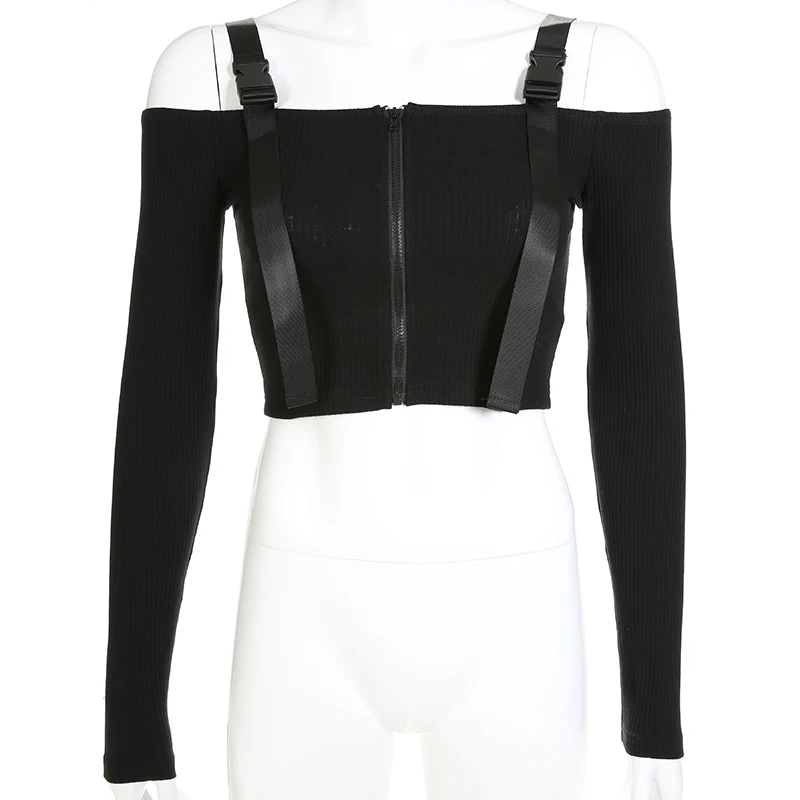 . (46% Off) Offerte Sweetown di Moda Al Largo Della Spalla Manica Lunga Crop Magliette e camicette T Shirt Per Le Donne Sexy di Estate di Stile Coreano di Autunno Harajuku Nero tshirt Economici Prezzo Online.
