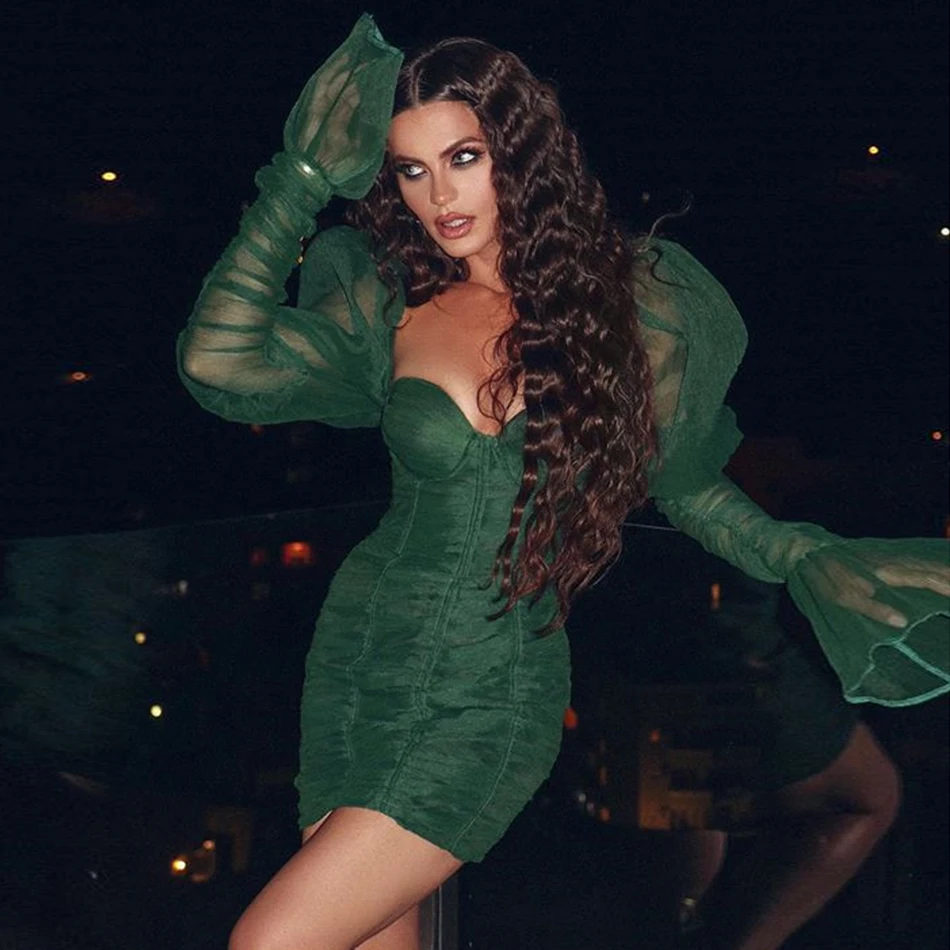 Special Offer 2019 Nuovo Autunno Verde nero del Mini Vestito Delle Donne Con Scollo A V Manica Lunga Sexy Delle Signore Retro Vestito Aderente Del Partito Del Vestito Elegante Abiti Discount 49% Today!