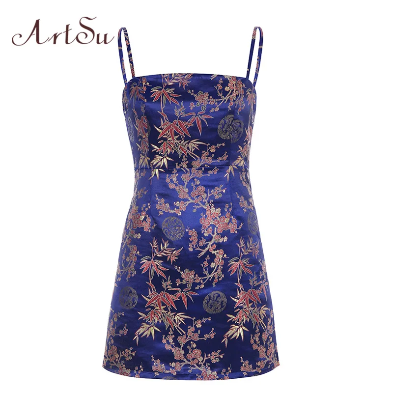 Special Offer ArtSu Senza Maniche Dell annata Della Cinghia di Spaghetti Delle Donne del Vestito Backless Aderente Mini Vestito Sexy Vestiti Delle Signore di Estate Del Partito Blu ASDR22047 Discount 49% Today!