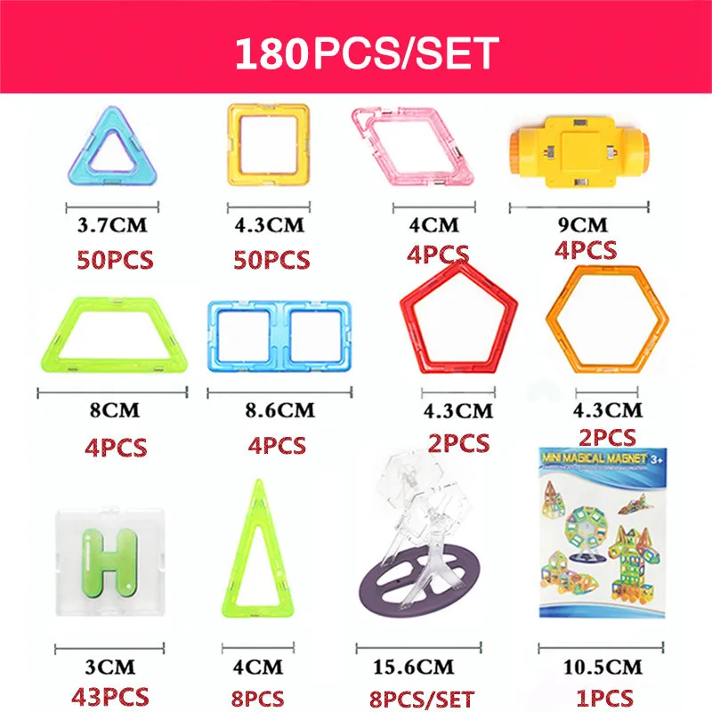 Product Name: Nuovo 180pcs Mini Magnetico Del Progettista di Costruzione Modello di Serie e Costruzione di Giocattoli di Plastica Blocchi Magnetici Giocattoli Educativi Per I Bambini Il Regalo