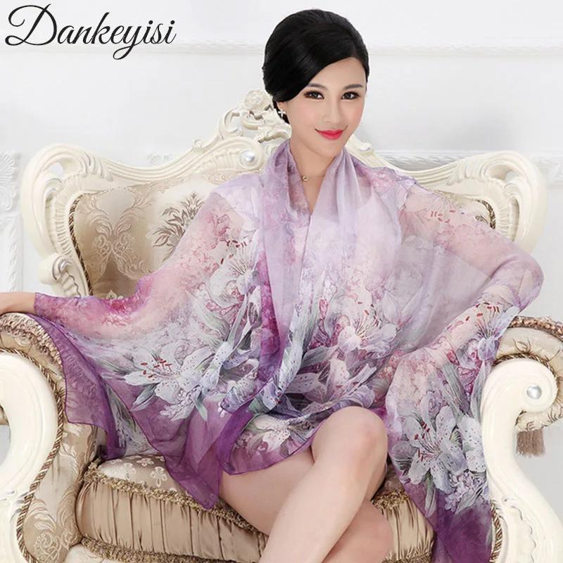Special Offer DANKEYISI Marca bandana 2018 Puro Spiaggia di Seta Coperte Sciarpe Donne Sciarpa di Seta Scialle Femminile Del Fiore Della Stampa Hijab Foulard Wrap Discount 50% Today!