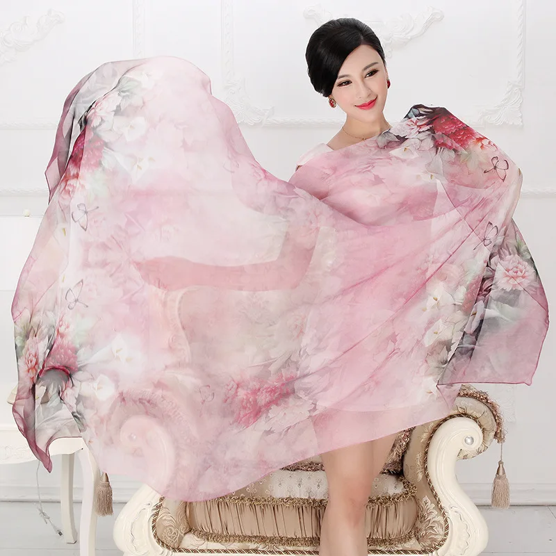 Product Name: DANKEYISI Marca bandana 2018 Puro Spiaggia di Seta Coperte Sciarpe Donne Sciarpa di Seta Scialle Femminile Del Fiore Della Stampa Hijab Foulard Wrap