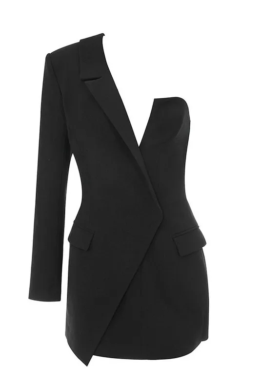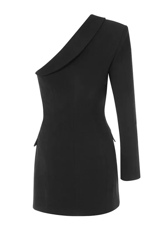 Special Offer Di alta Qualità A Manica Lunga Nero Una Spalla Elegante Vestito Da Partito Del Randello del Vestito Discount 12% Today!