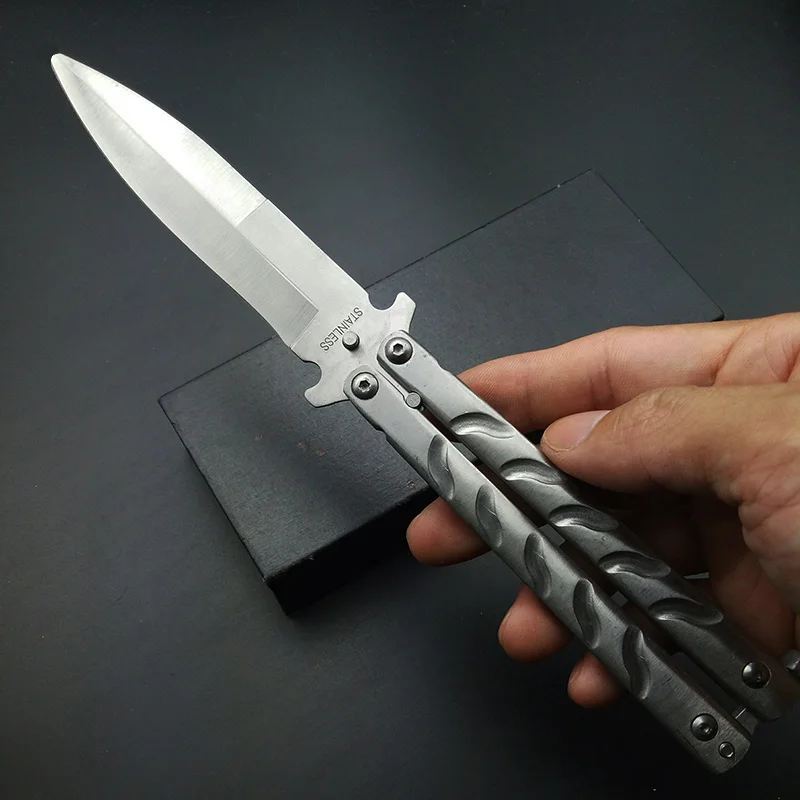 . (15% Off) Offerte Farfalla in Argento Lama di Titanio Rivestito Formazione Pratica Farfalla No Bordo Pieghevole Coltello a Farfalla Non Taglienti Strumenti Miglior Prezzo Online.