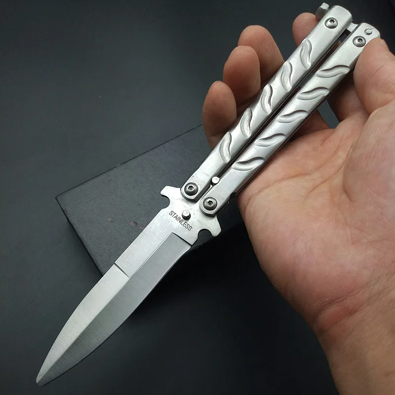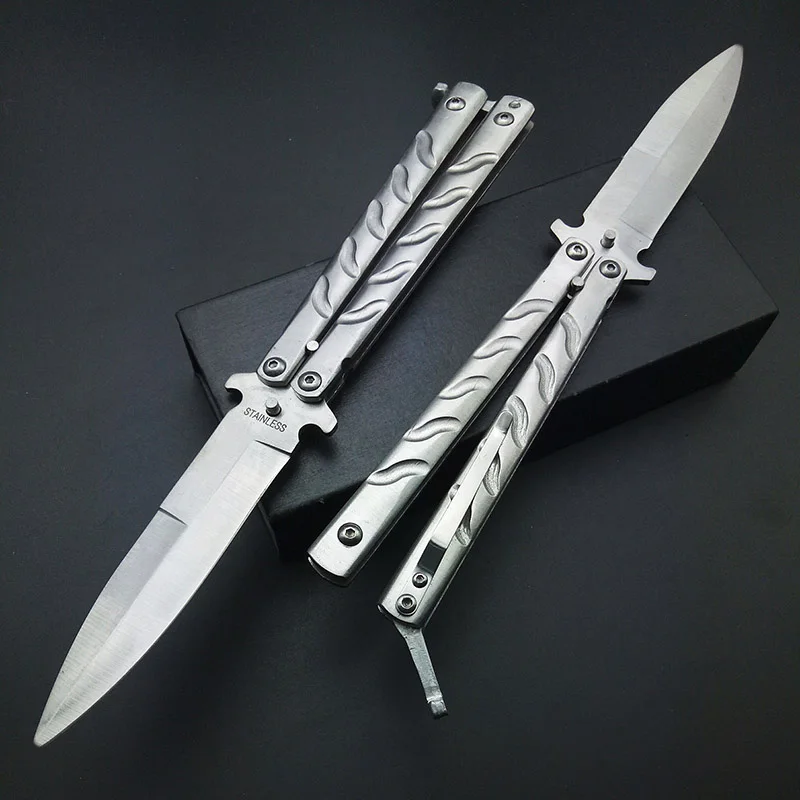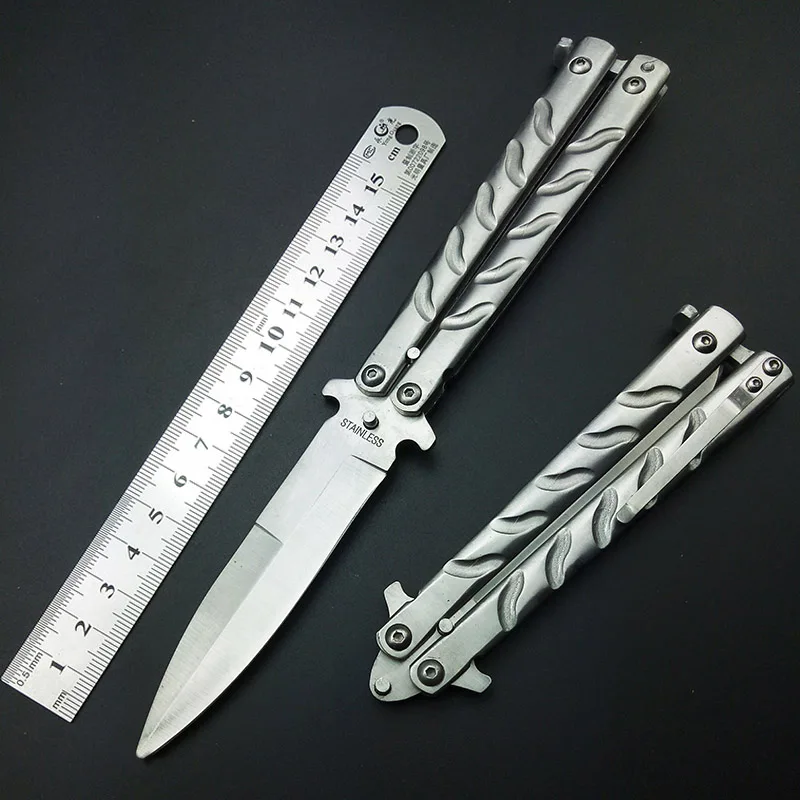 Special Offer Farfalla in Argento Lama di Titanio Rivestito Formazione Pratica Farfalla No Bordo Pieghevole Coltello a Farfalla Non Taglienti Strumenti Discount 15% Today!