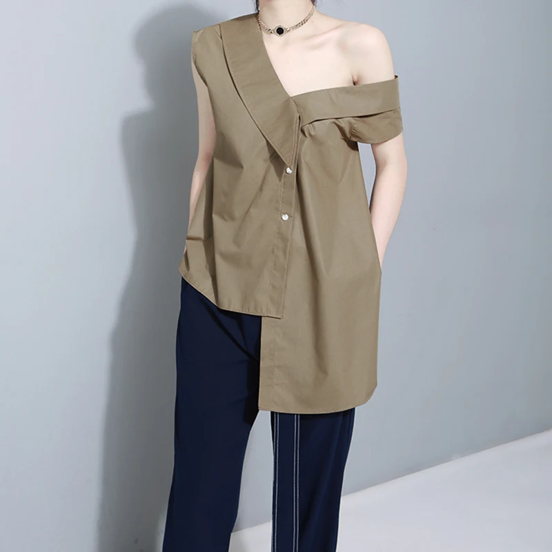 . (20% Off) Comprare TWOTWINSTYLE Senza Maniche Fiocchi e Fasce Tunica Camicette delle Donne Camicette Estate 2019 Del Collare di V Nero Khaki Irregolare Slaccia la Camicia Magliette e camicette casual Economici Prezzo Online.