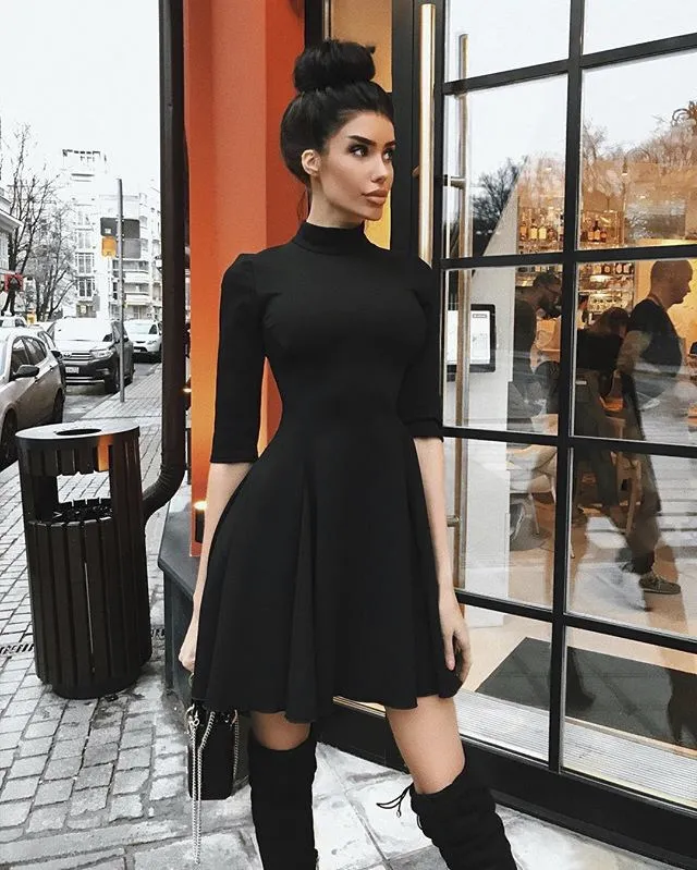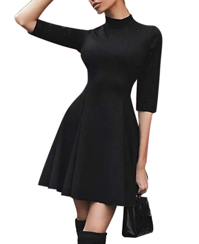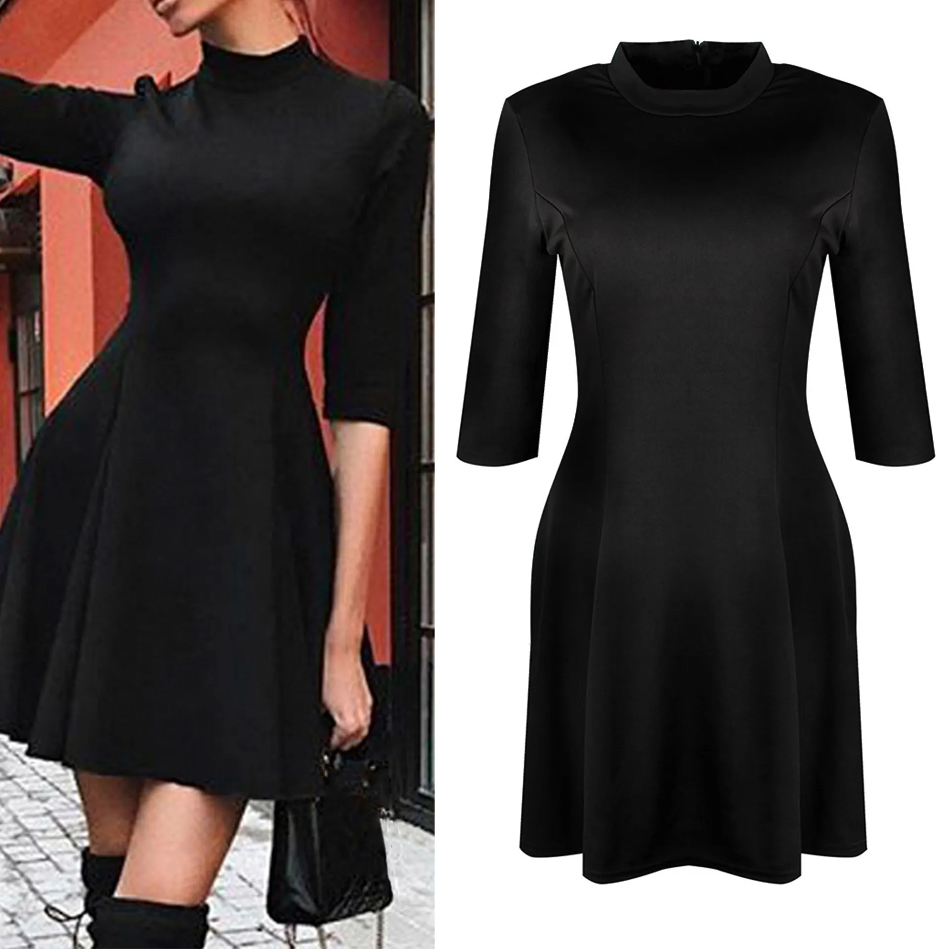 Special Offer Vestito Da Partito solido Nero Girocollo Mezza Manica Fit Una Linea Vestiti Delle Donne Elegante Abito di Primavera Discount 20% Today!