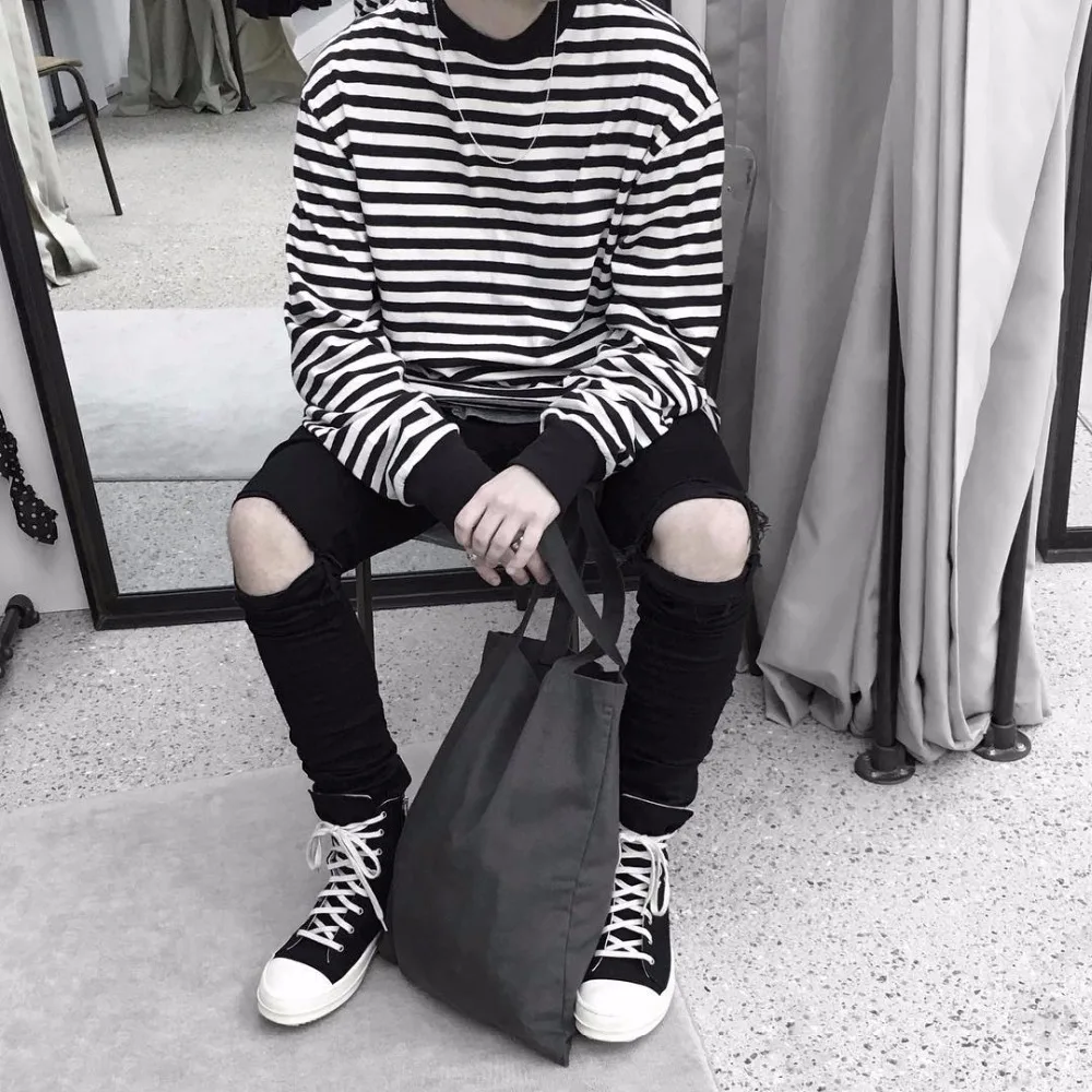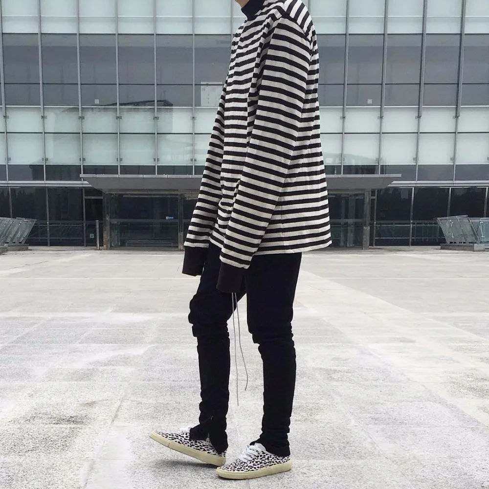 . (23% Off) Offerte Justin Bieber Autunno Nuovo a righe T Shirt Mens Del Cotone A Righe A Manica Lunga T Shirt da uomo hip hop Nero Bianco T Shirt street wear Economici Prezzo Online.