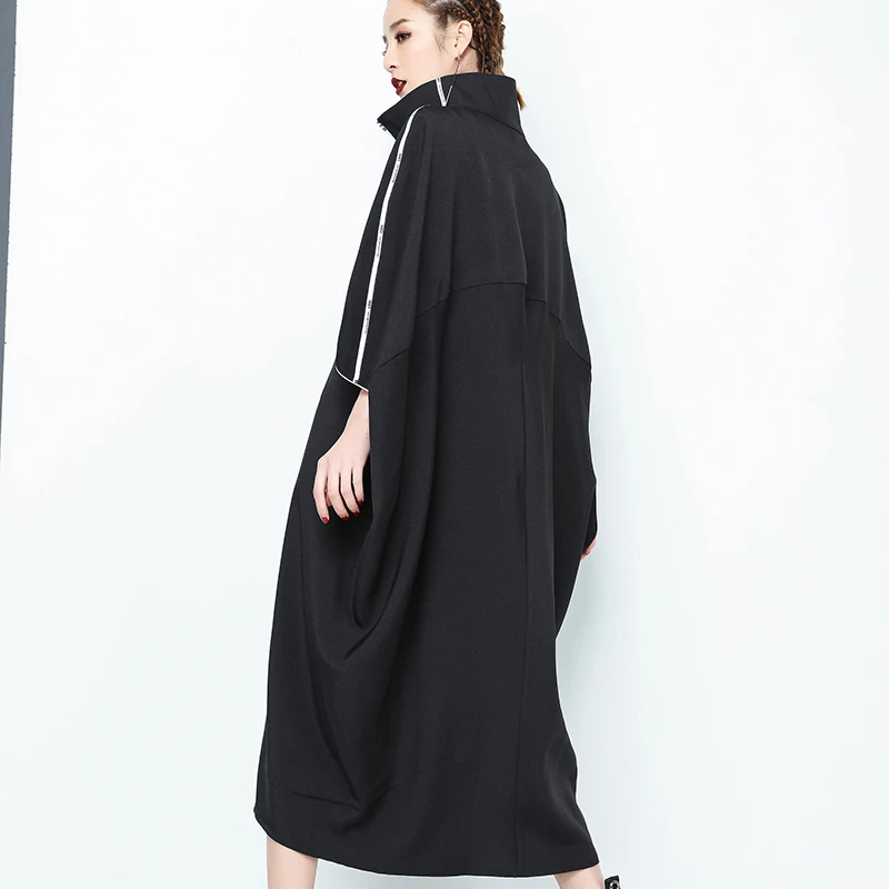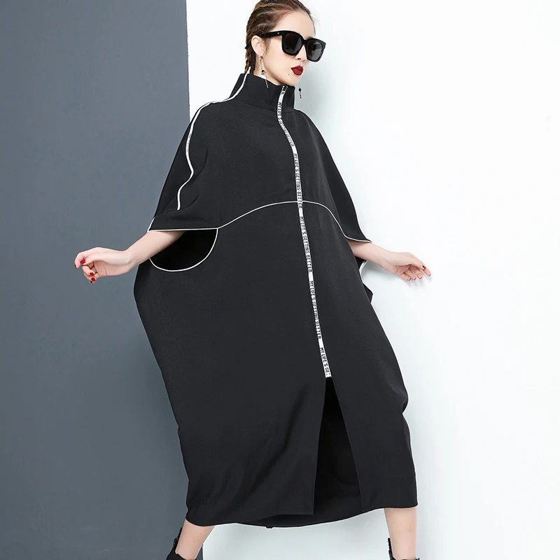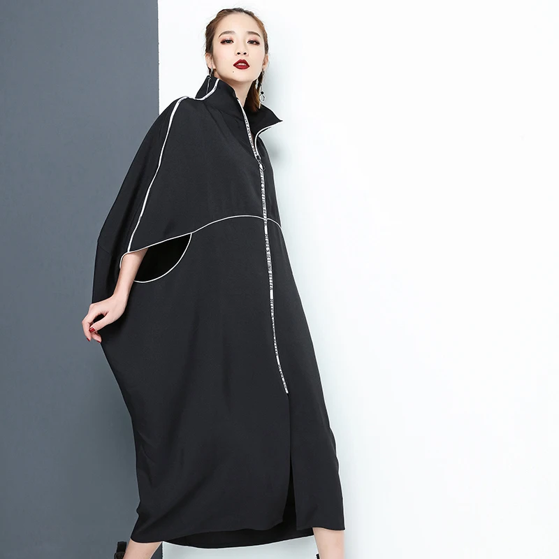 . (26% Off) Offerte [EAM] 2019 Nuova Primavera Del Collare Del Basamento Manica Lunga Nero Lettera Della Chiusura Lampo Irregolare Solido di Grande Formato Delle Donne del Vestito di Modo marea JE65001 Miglior Prezzo Online.