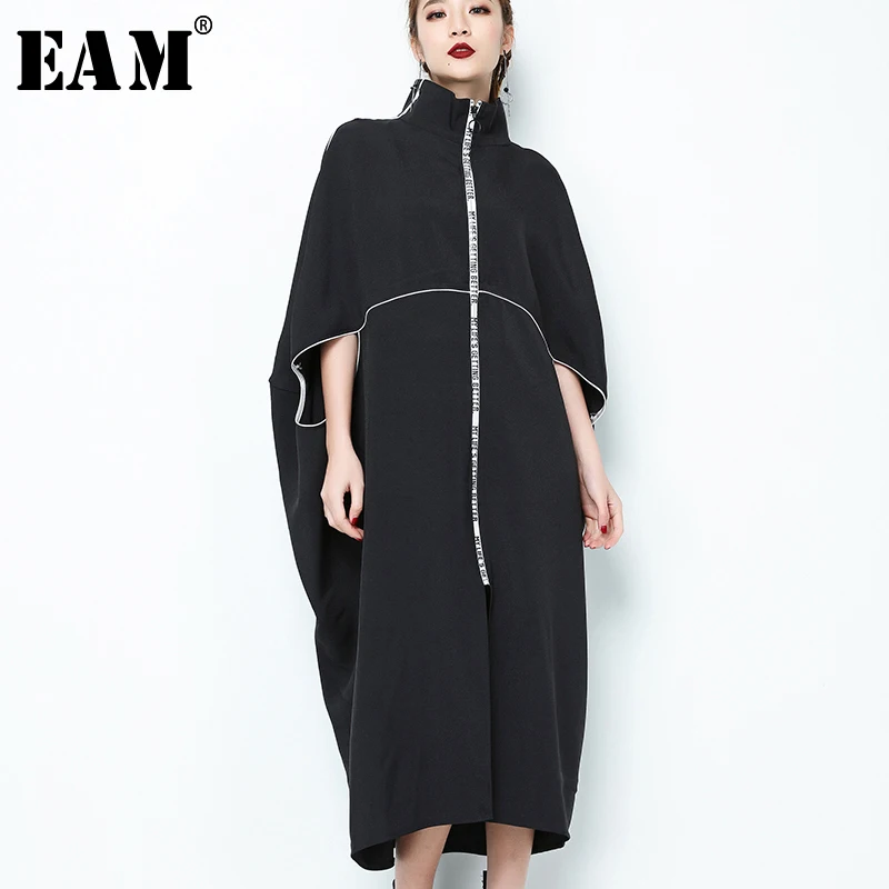 Special Offer [EAM] 2019 Nuova Primavera Del Collare Del Basamento Manica Lunga Nero Lettera Della Chiusura Lampo Irregolare Solido di Grande Formato Delle Donne del Vestito di Modo marea JE65001 Discount 26% Today!