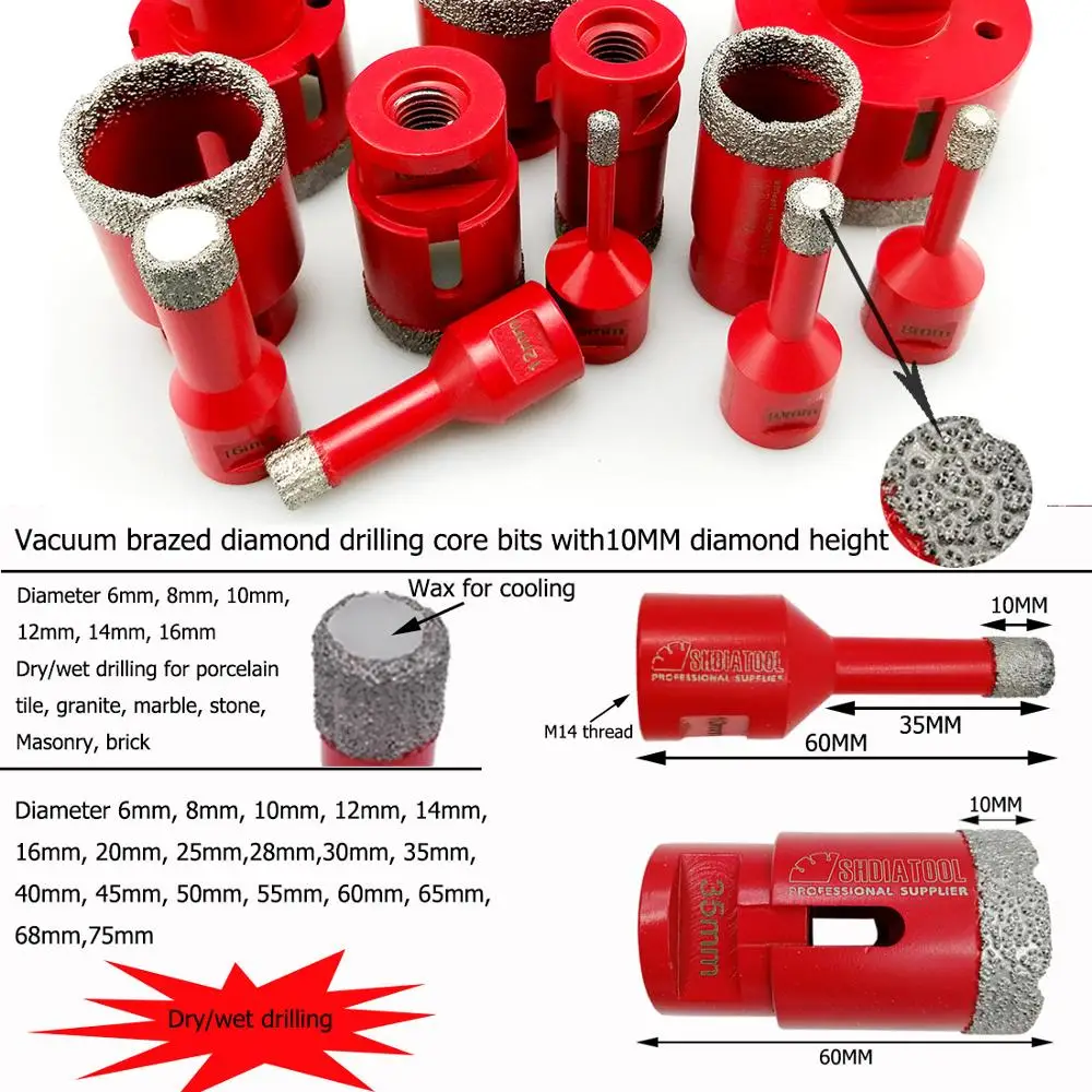 . (32% Off) Comprare SHDIATOOL Dry Vacuum Brazed M14 Connection Diamond Drilling Core Bits Diamond Height 10mm Hole saw for porcelain tile stone Economici Prezzo Online.