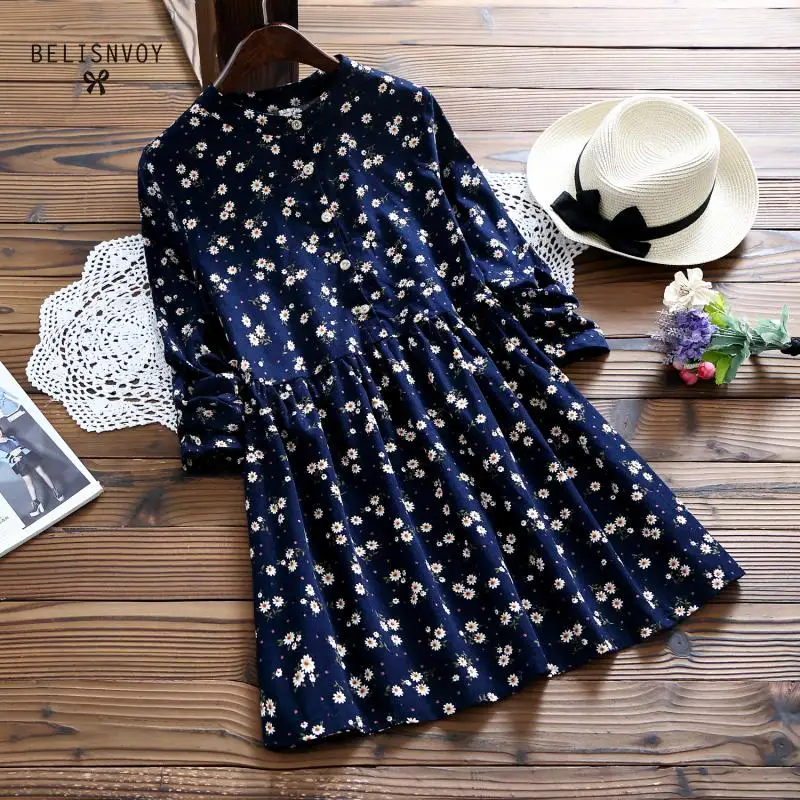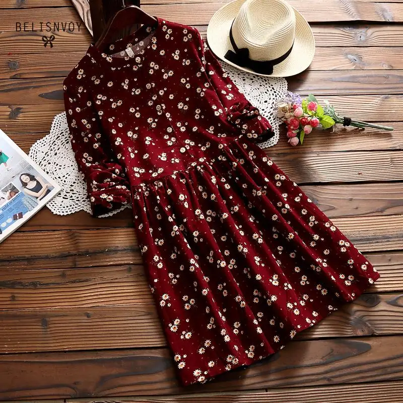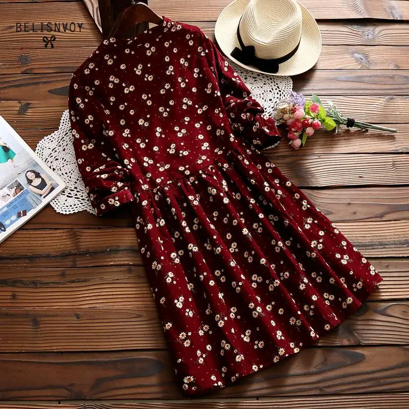 . (37% Off) Comprare 2019 Nuovo Autunno E in Inverno i Vestiti di Colore Rosso Blu Stampa Floreale Manica Lunga O Collo Del Vestito di Velluto A Coste di Gusto Squisito Del Vestito Miglior Prezzo Online.