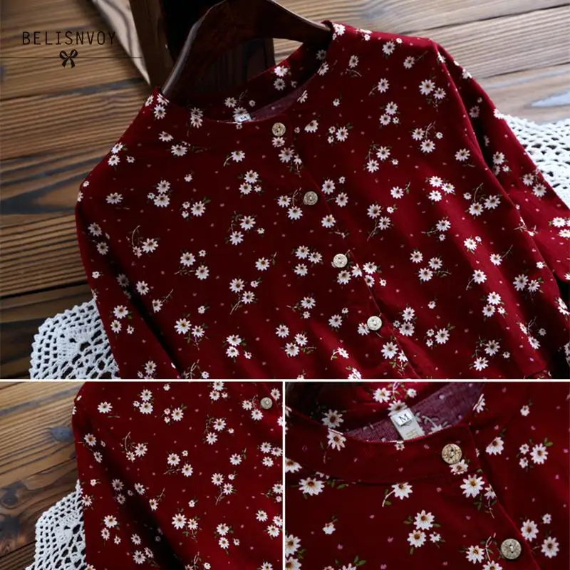 Special Offer 2019 Nuovo Autunno E in Inverno i Vestiti di Colore Rosso Blu Stampa Floreale Manica Lunga O Collo Del Vestito di Velluto A Coste di Gusto Squisito Del Vestito Discount 37% Today!