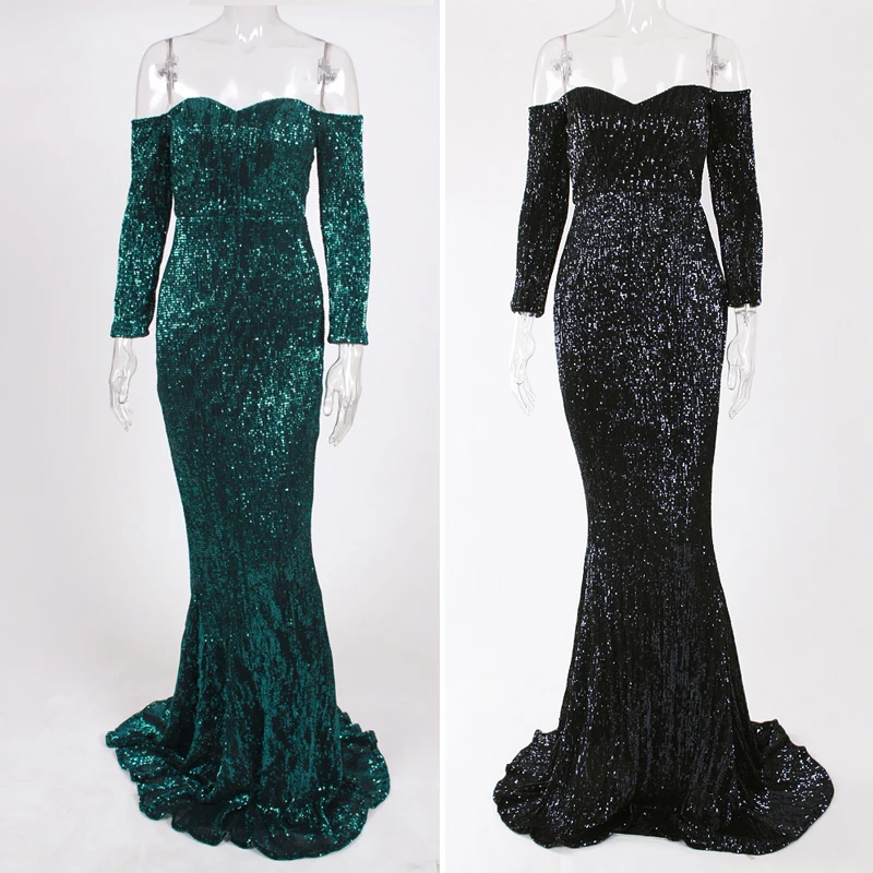 Special Offer Con paillettes Maxi Abiti Champagne Oro Navy Blu di Lunghezza Del Pavimento Vestiti Da Partito Maxi Vestito Abito Abito Da Sera Al Largo Della Spalla Discount 43% Today!