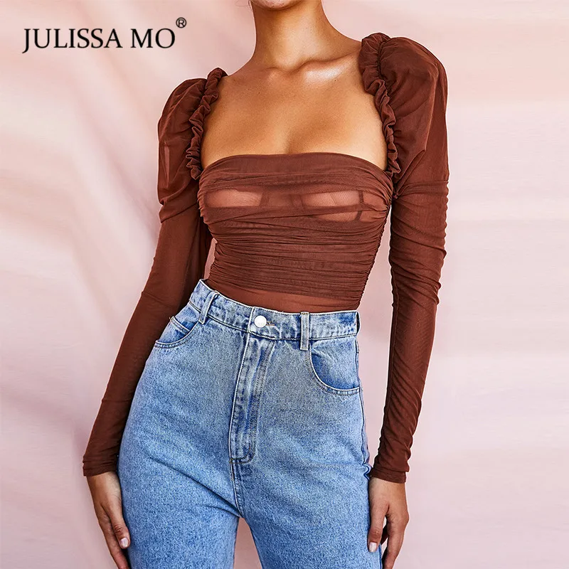Special Offer JULISSA MO Nero Doppio Strato di Maglia Sexy Della Tuta Delle Donne Magliette e camicette Autunno Nuovo Manicotto Lungo Della Metà di Vita Body e Tutine Delle Signore Bodycon Tute e Salopette Discount 44% Today!