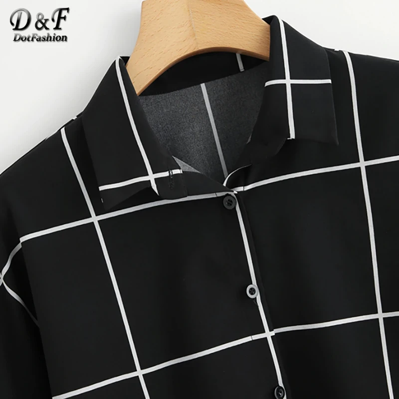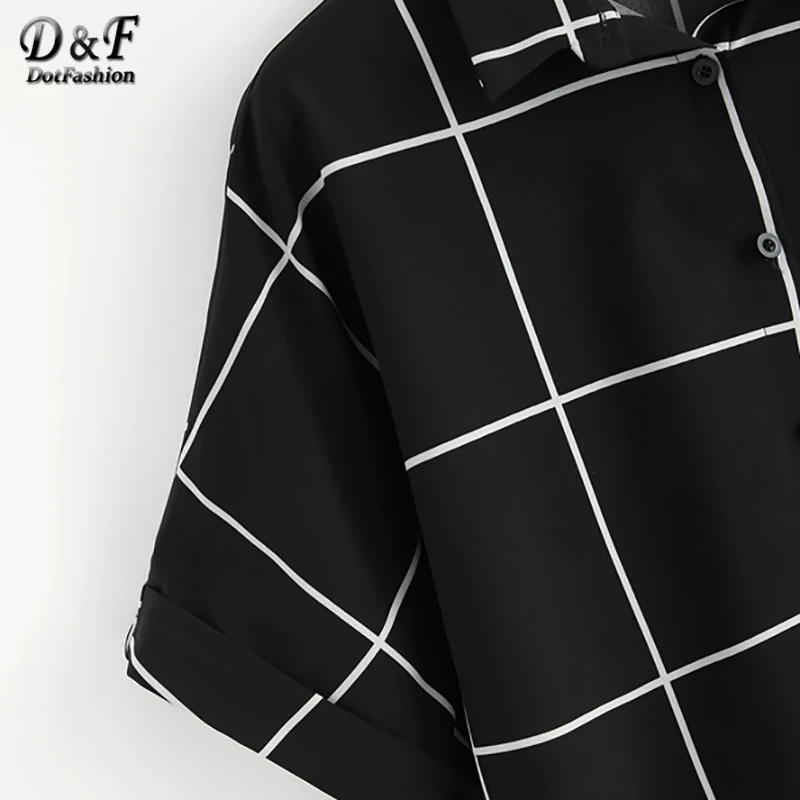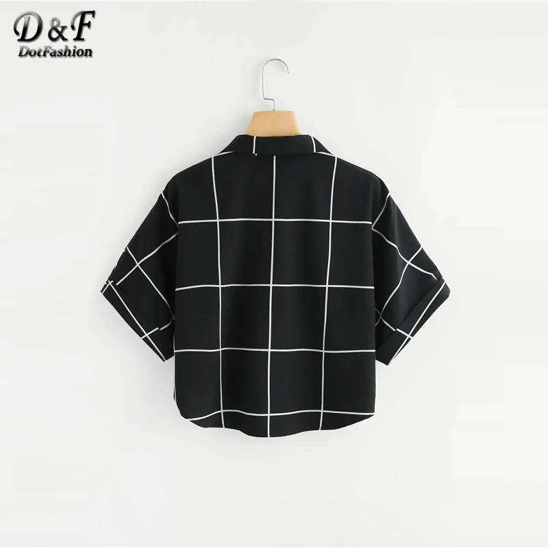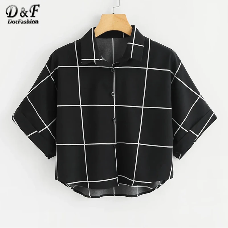. (46% Off) Comprare Dotfashion in Bianco E Nero Con Risvolto Manica Della Camicia di Griglia 2019 di Estate casual Abbottonatura Del Manicotto Del Batwing Abbigliamento Donna Magliette e camicette E Camicie Miglior Prezzo Online.