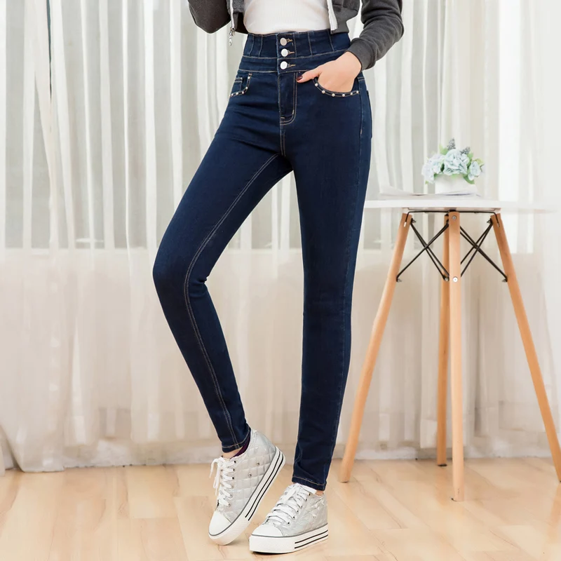 Special Offer LEIJIJEANS 2019 autunno inverno blu a vita alta elastica mamma jeans con fly pulsante di stile di modo più il formato 5XL 6XL delle donne dei jeans Discount 50% Today!