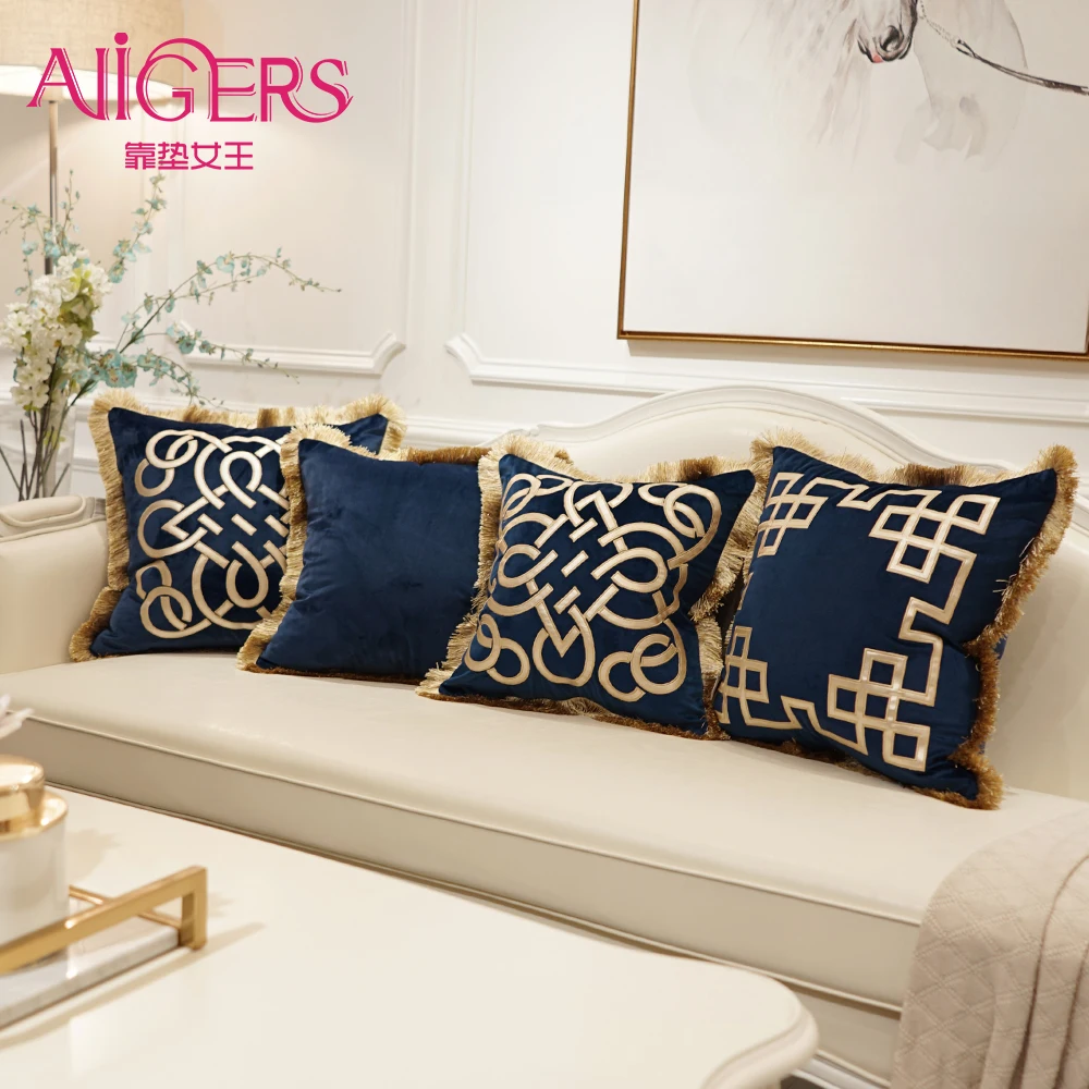 Special Offer Avigers di Lusso Ricamato Cuscino Coperture Velluto Nappe Coperture per Cuscini Decorativo Per La Casa Europea Divano Auto Coperte e Plaid Cuscini Blu Marrone Discount 51% Today!