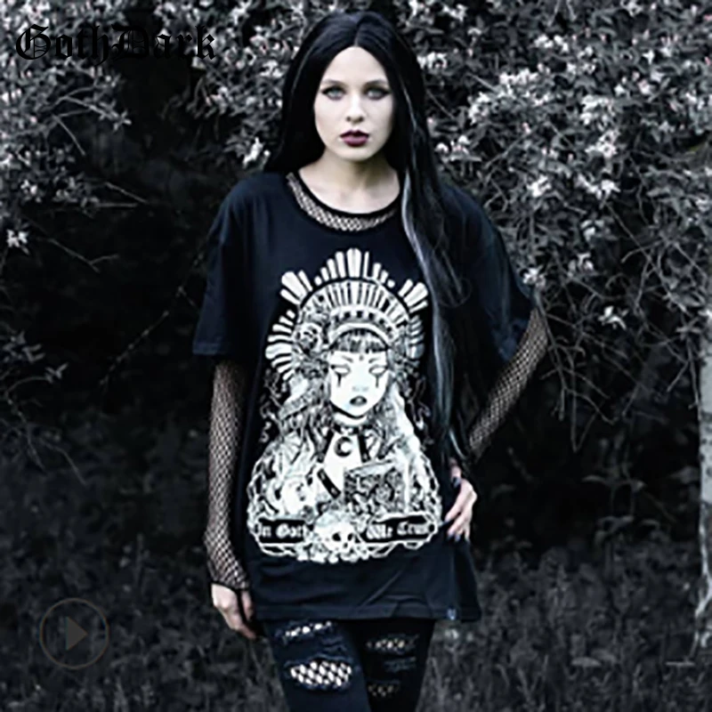 Product Name: Goth Grunge Scuro Nero Stampa T shirt Allentato Gotico Punk Harajuku Streetwear Estate 2019 T shirt di Moda Femminile Estetica T shirt