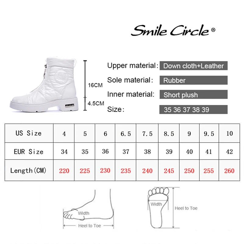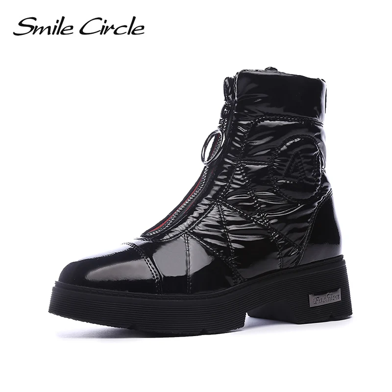 Product Name: 2019 stivali Invernali Donne Stivali Da Neve Caldo giù scarpe facile da usura della ragazza bianco Nero zip Piatto pattini della piattaforma Grosso Stivali sorriso Cerchio