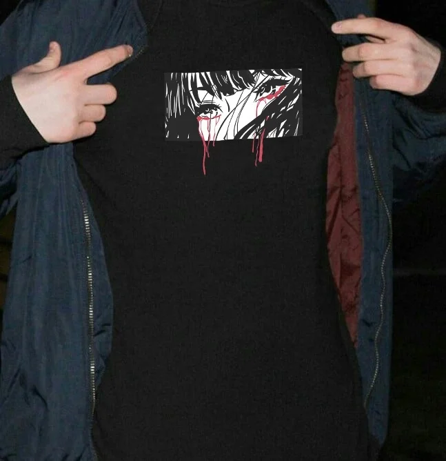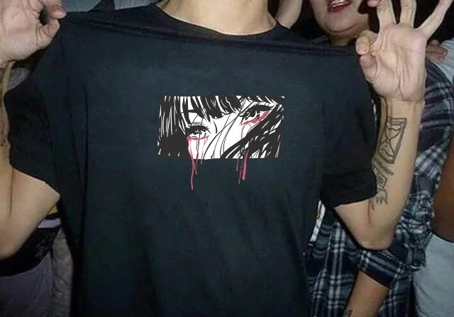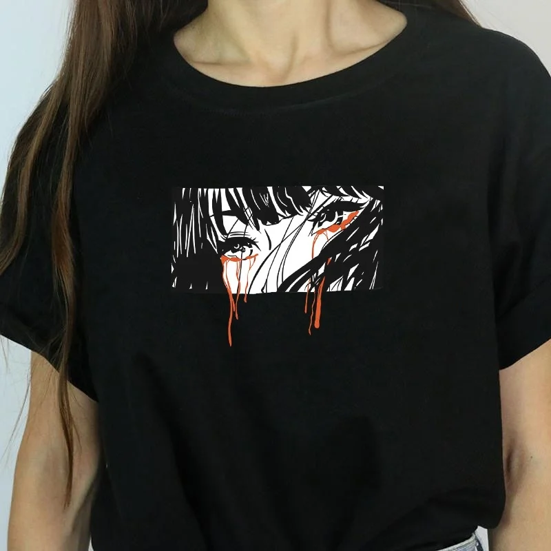 Product Name: Sfilata di moda YF Unisex Piangere Ragazza T Shirt Nera Tumblr Estetica Moda Vintage Graphic Tee Harajuku Style Top