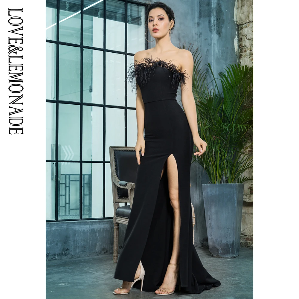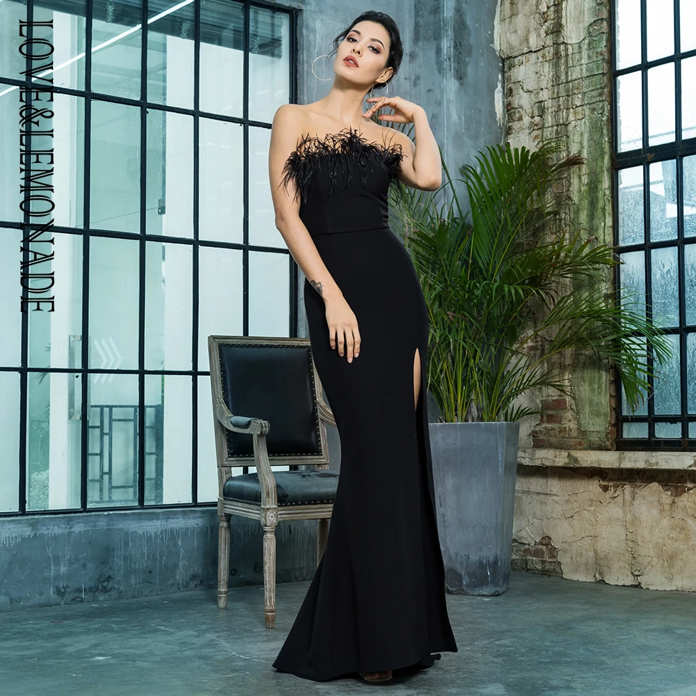 Special Offer Amore Limonata Nero Senza Spalline Cut Out Della Piuma Vestito Lungo LM81481 Discount 24% Today!