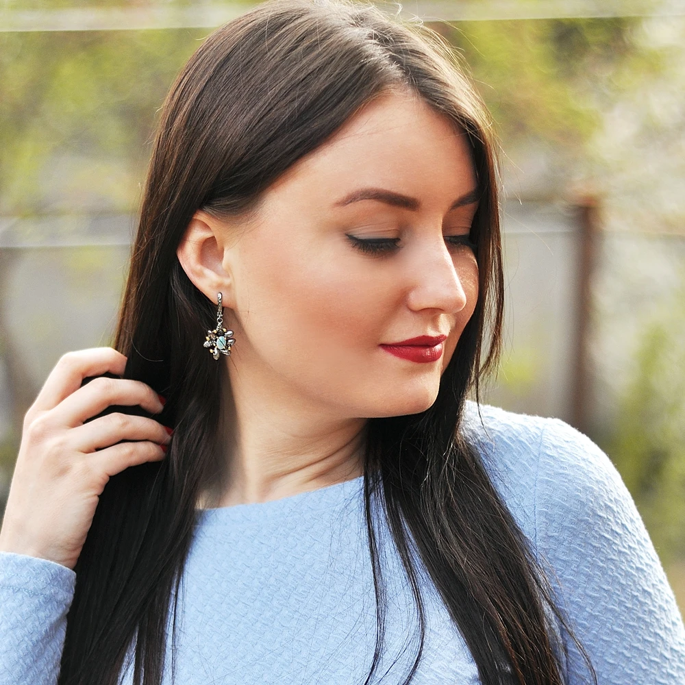 Special Offer DreamCarnival 1989 Dell annata Del Fiore Orecchini Donne Del Partito di Nozze Simulato Blue Opal Pietra Gotico Nero di Vendita Calda Dei Monili WE3890 Discount 30% Today!