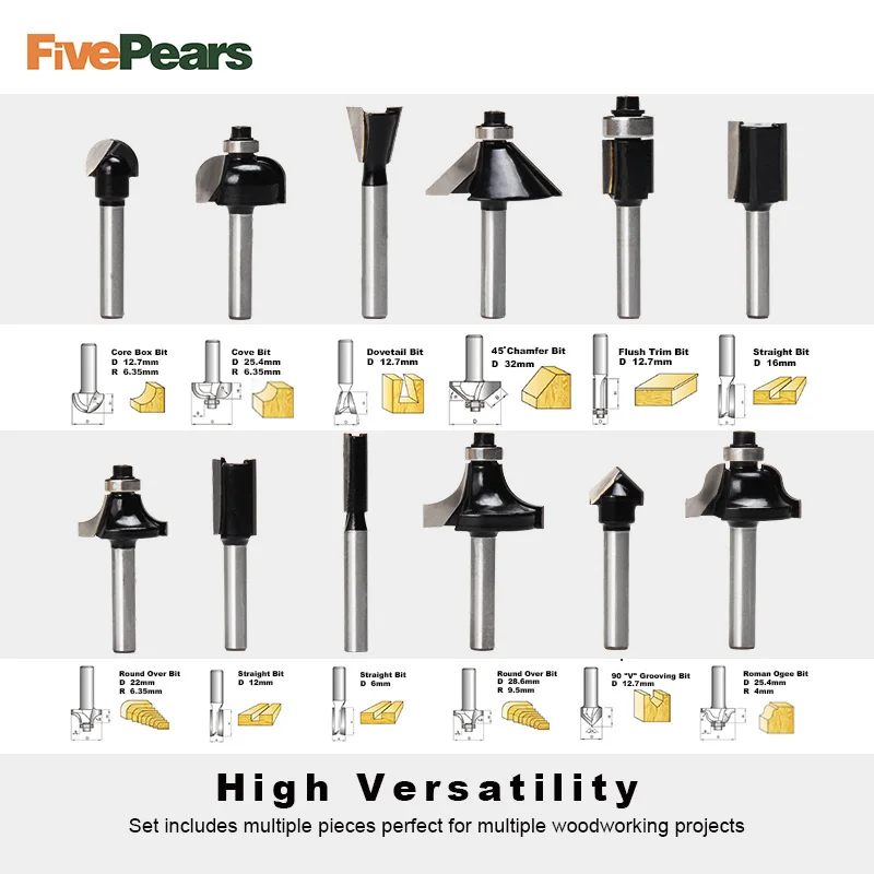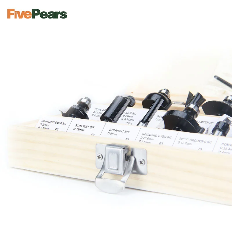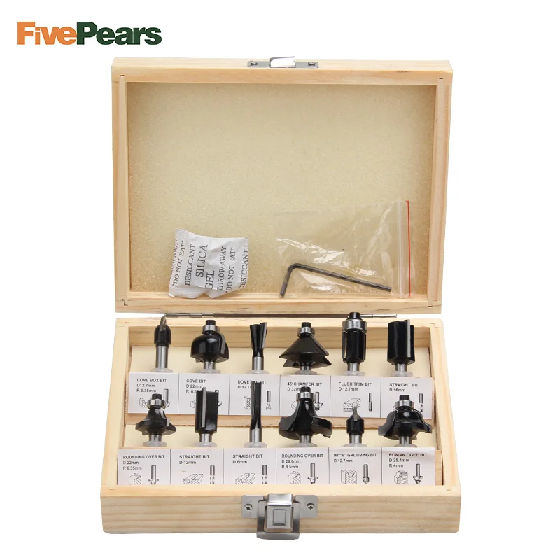 Product Name: FivePears 12pcs 6 millimetri Router Bit Set Professionale Shank Carburo di Tungsteno Router Bit Cutter Set Con Cassa di Legno Per di legno