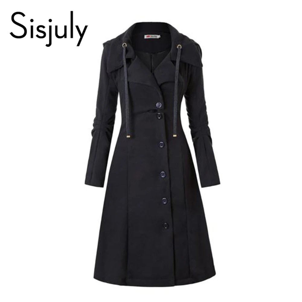 Special Offer Sisjuly di Lana Donne Cappotto di Inverno Nero Vintage Gothic Sottile Soprabito Elegante Casual Lace Up Lunga Retro Pulsante Femminile Trench e Impermeabili Cappotti Discount 50% Today!