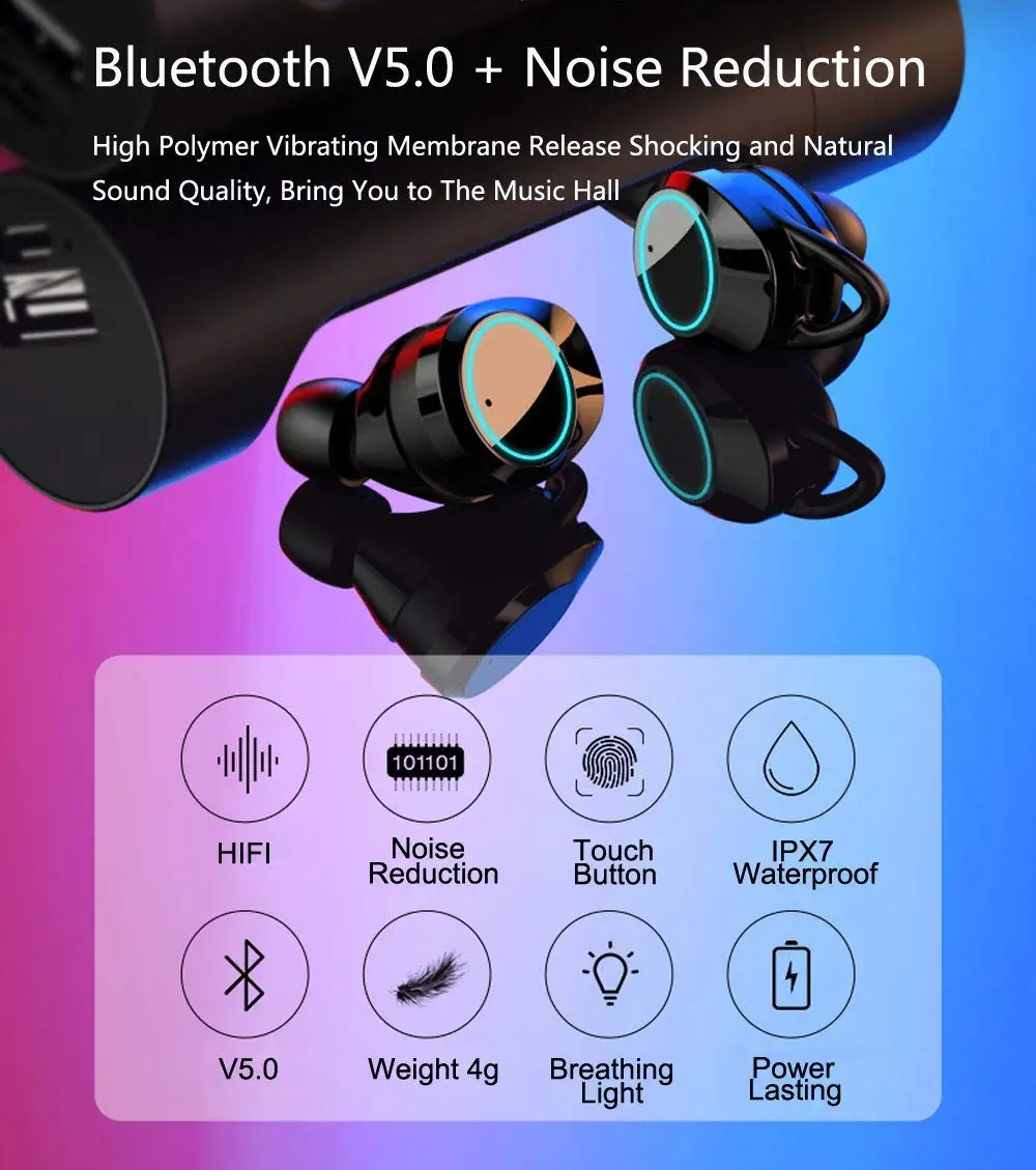Product Name: Samload Bluetooth 5 Auricolari Stereo Senza Fili Cuffie IPX7 Impermeabile Auricolare Senza Fili con la scatola del caricatore Per La Maggior Parte di Smart Phone