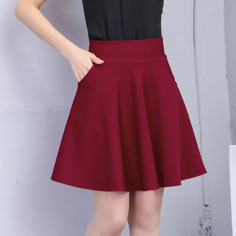 Special Offer 2019 Primavera e di Autunno Delle Donne Gonna A Pieghe Coreano Sottile Sexy di Colore Solido Tasca Obliqua Elastico Gonna A Vita Alta Nero Mini pannello esterno Discount 0% Today!