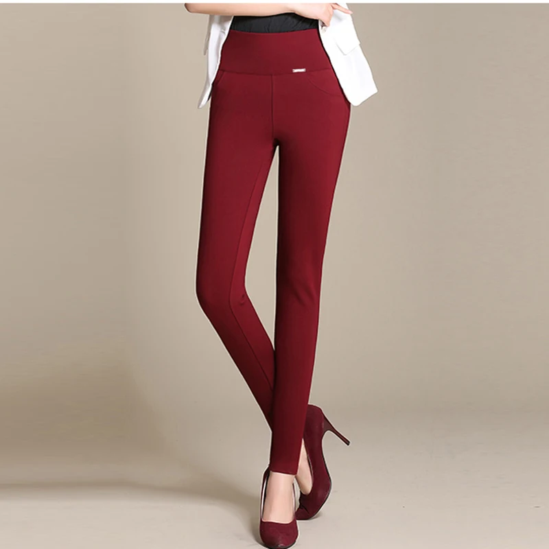 Product Name: Pantaloni delle donne di inverno Ufficio di Spessore In Pile Caldo A Vita Alta dei pantaloni della matita di Stirata del nero Bianco pantaloni Più i pantaloni di Formato 5XL 6XL Leggings 2019