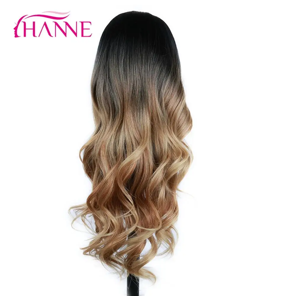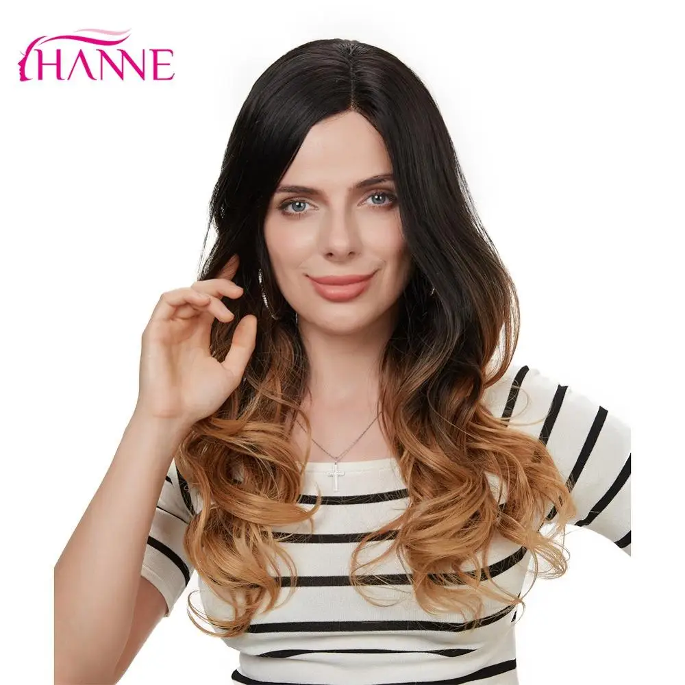 Product Name: HANNE Long Sintetico Ondulate Parrucche Ombre Bionda Parrucca Marrone Grigio Capelli Fibra Resistente Al Calore Per Il Nero Bianco Delle Donne di Cosplay del partito