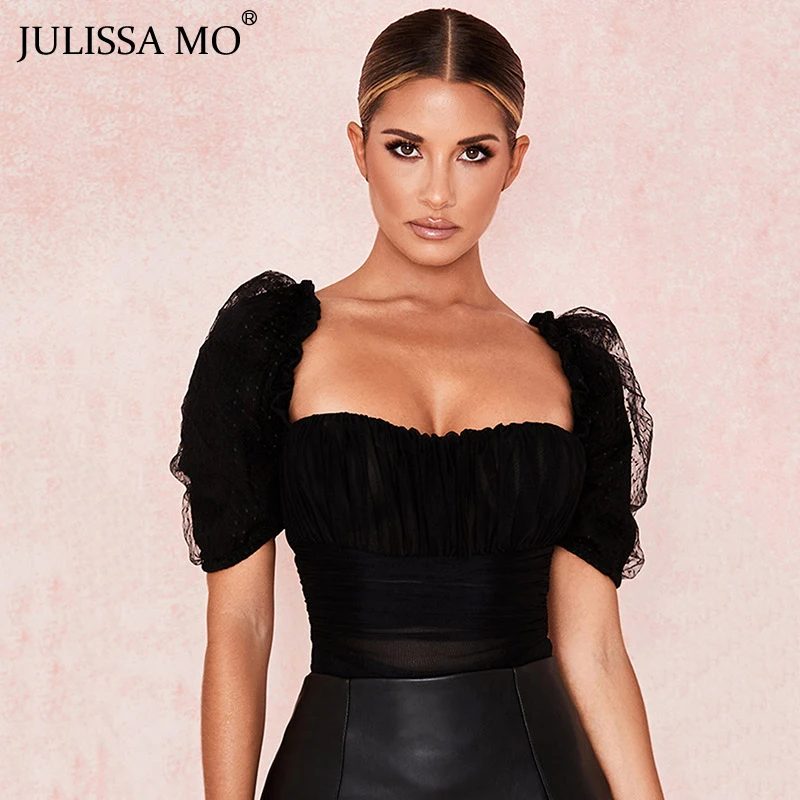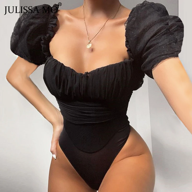. (44% Off) Offerte JULISSA MO Puntino Nero Della Maglia Sexy Della Tuta Delle Donne Magliette e camicette Elegante Del Manicotto di Soffio Del Collare Del Quadrato Body e Tutine Autunno Skinny Partito Tute e Salopette 2019 Economici Prezzo Online.