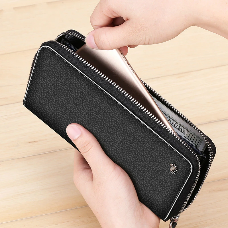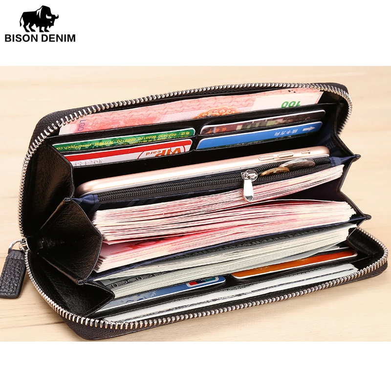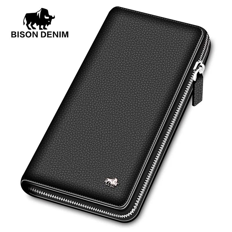 Product Name: BISON DENIM di lusso del cuoio genuino degli uomini portafogli lunga chiusura lampo della borsa della frizione business casual maschile titolare della carta di credito del raccoglitore del telefono