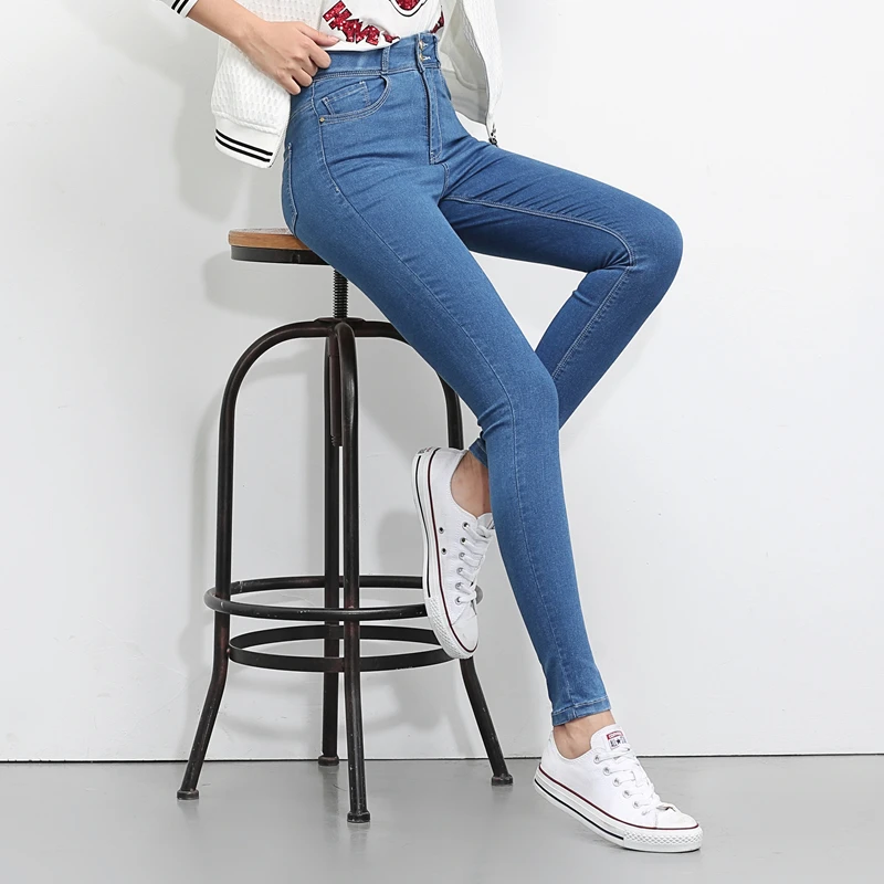 Special Offer Jeans Donna Vita Alta Più Il Formato Tratto di autunno di estate figura Intera Skinny Sottile del denim Dei Pantaloni per le donne nero blu 5XL 6XL Discount 51% Today!