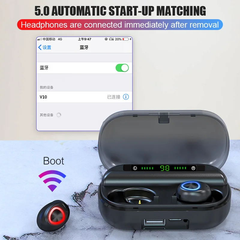 Product Name: TWS Trasduttore Auricolare Senza Fili Bluetooth 5.0 Display Touch di Controllo di Potenza Auricolari Sport Cuffie Stereo Auricolari Auricolare Scatola di Carico